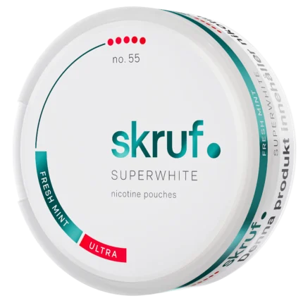 Skruf Super White är ett all white-varumärke från klassiska Skruf snus. De helvita prillorna saknar tobak men innehåller alla nikotin och kommer i flera spännande smaker. Sedan Super White lanserades 2018 har Skruf lanserat sju olika smaker och styrkor.